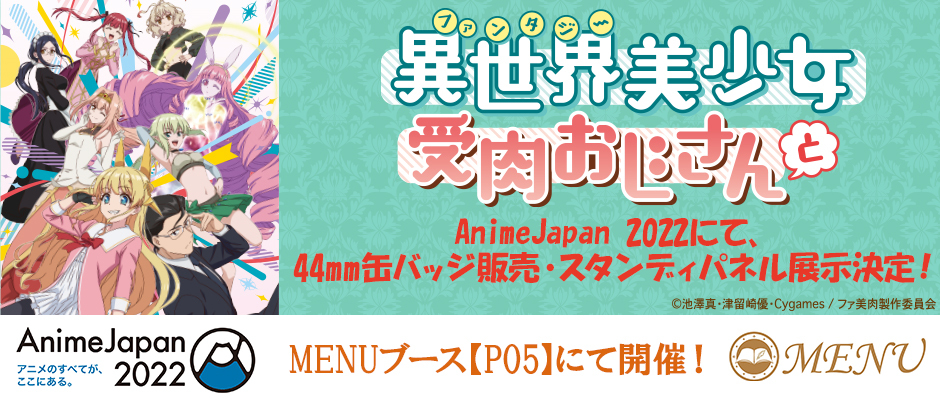 AnimeJapan 2022 MENUブース【P05】にて、 『異世界美少女受肉おじさんと』44㎜缶バッジ販売&スタンディパネル展示決定!